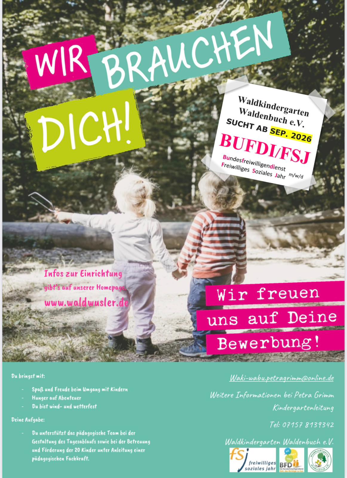 Schön, dass Sie den Weg zu uns gefunden haben! Bei den Waldwuslern erleben Kinder die Natur hautnah und wachsen in einer Umgebung auf, die zum Entdecken, Spielen und Lernen einlädt. Unser Kindergarten verbindet liebevolle Betreuung mit einem einzigartigen Konzept, das die Neugier und Kreativität der Kinder fördert.